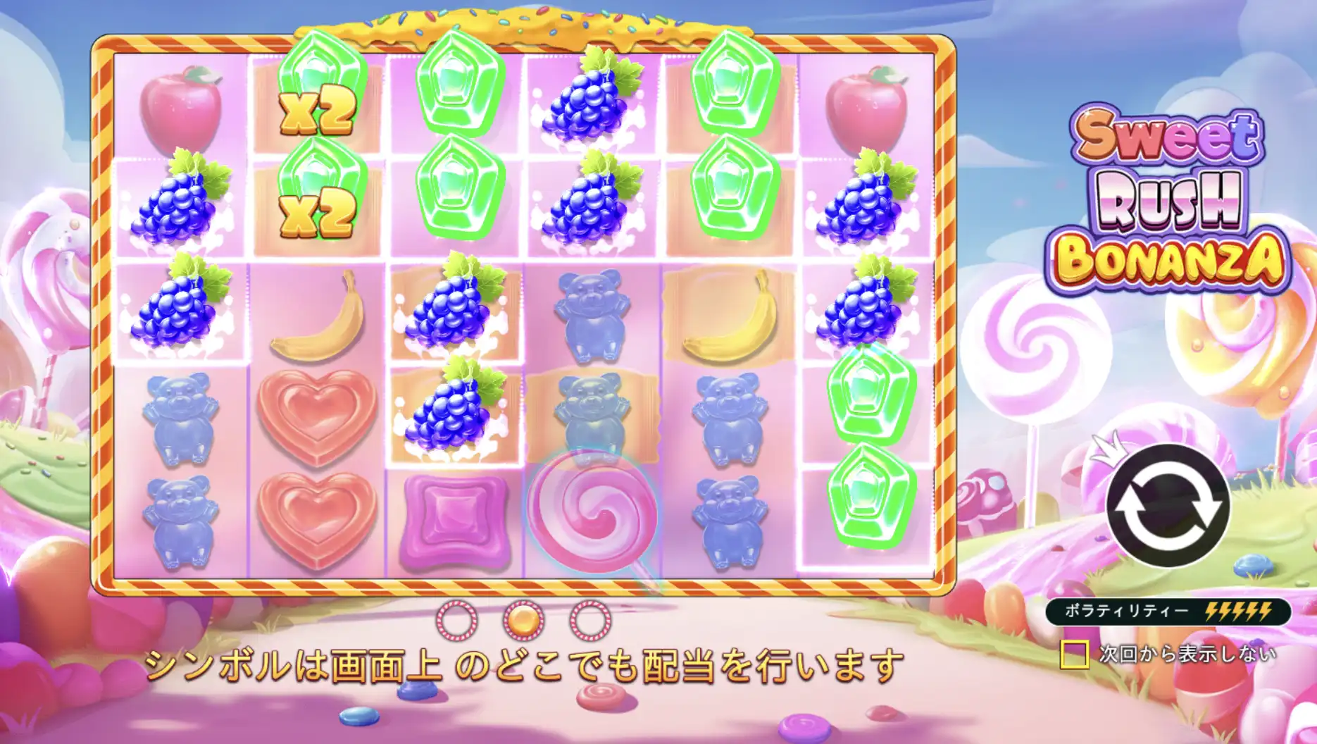 プラグマティックプレイの新作スロットであるスイートラッシュボナンザは名前に通り、人気スロットであるスイートボナンザとシュガーラッシュを掛け合わせたようなスロットで、独自の特徴があるので詳しく紹介していきます。