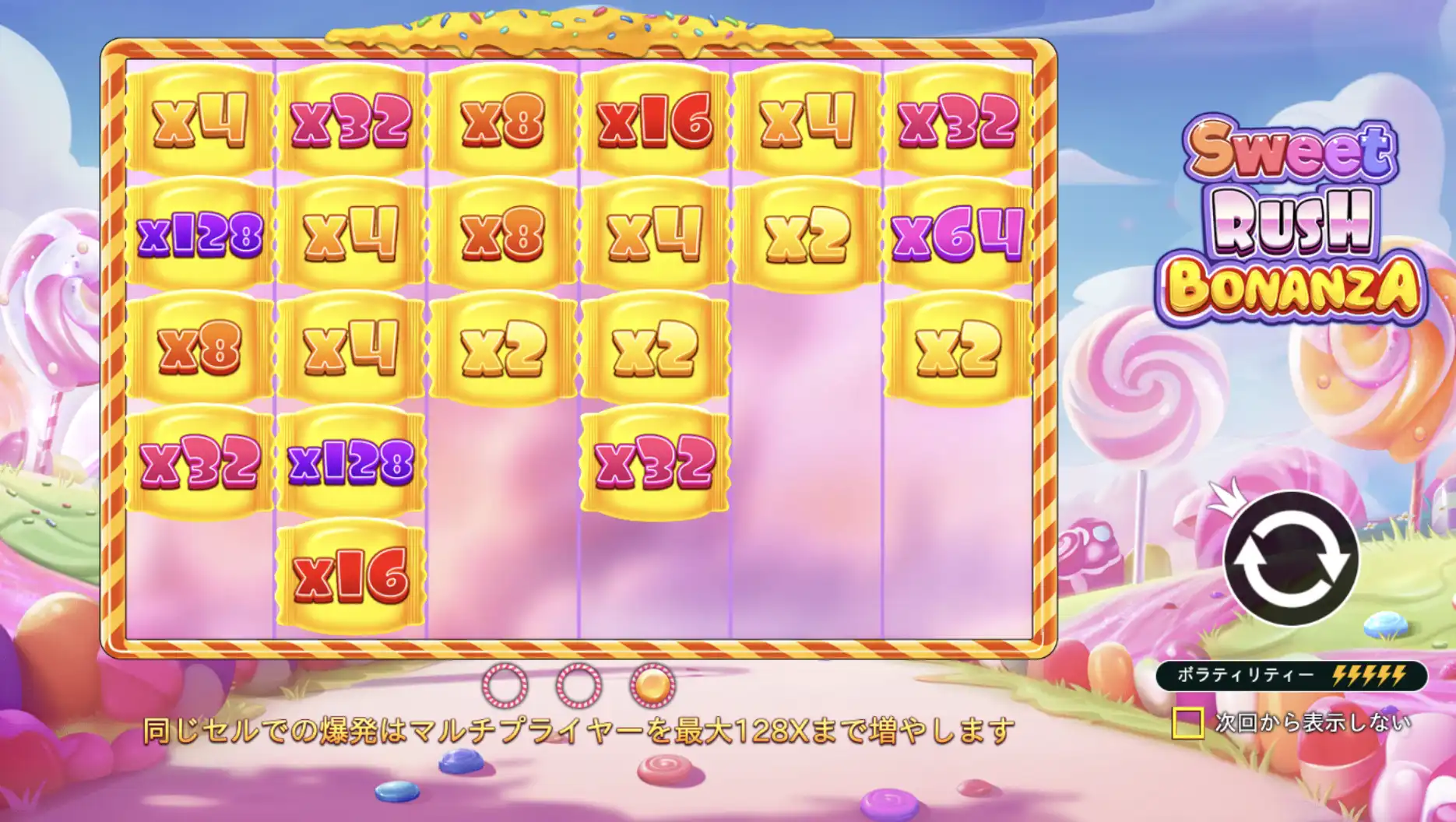マルチプライヤー特典 | 全マスにランダムにマルチプライヤー(x2〜x32など)が配置 |