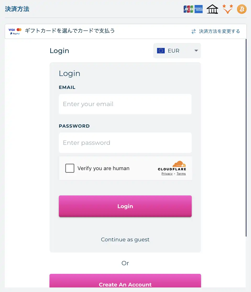 ギフトカードを購入して入金するためのプラットフォームにログインします。