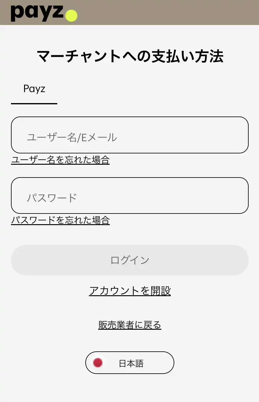 Payzのログイン情報を入力し、Payzにアクセスして決済を完了させます。